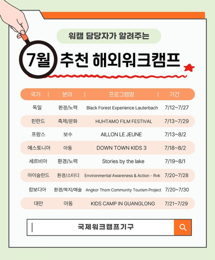 7월 추천 해외워크캠프 시리즈 2탄