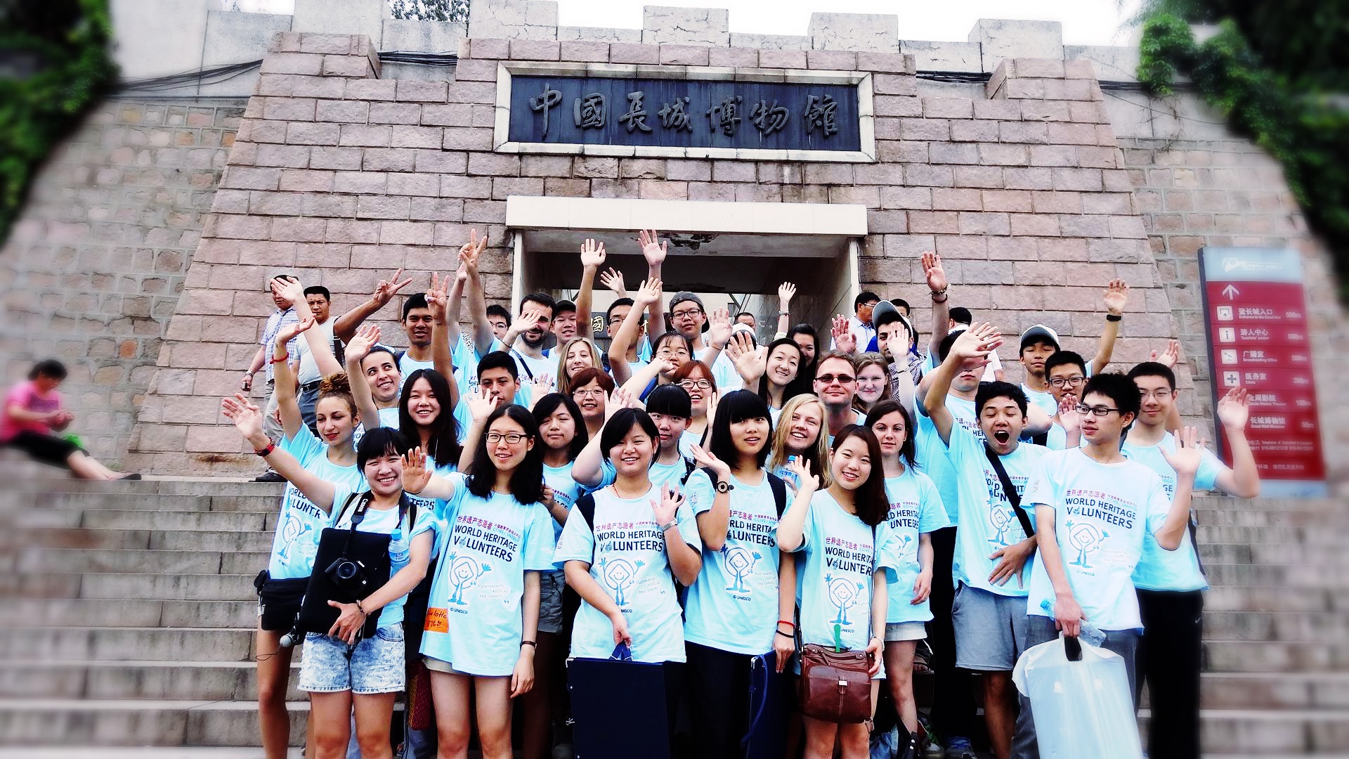 - 중국인 봉사자들과 함께 주변 중학교에 가서 세계유산보존에 관련된 그룹활동 진행