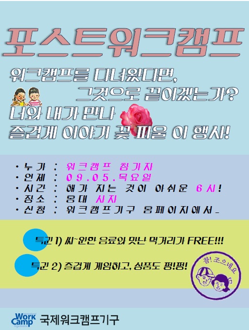 - 내용 : 워크캠프 참가경험 공유, 참가자 교류