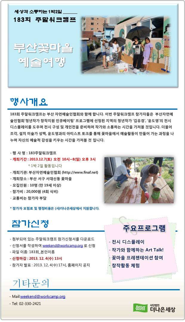 183회 부산꽃마을 주말워크캠프. 12/7(토)-8(일)