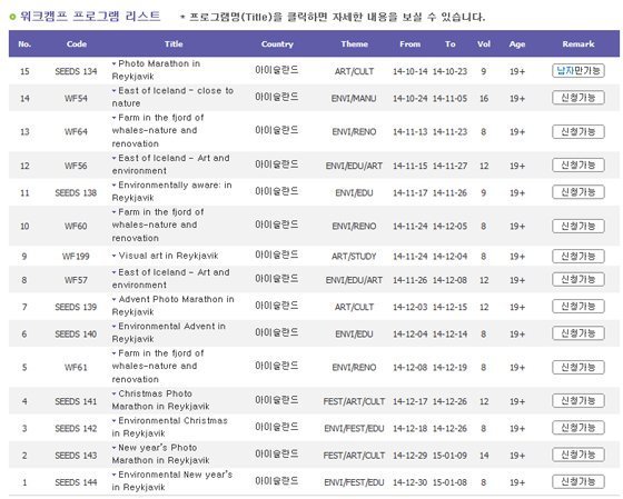 워크캠프 리스트를 보려면 이미지를 클릭 하세요!