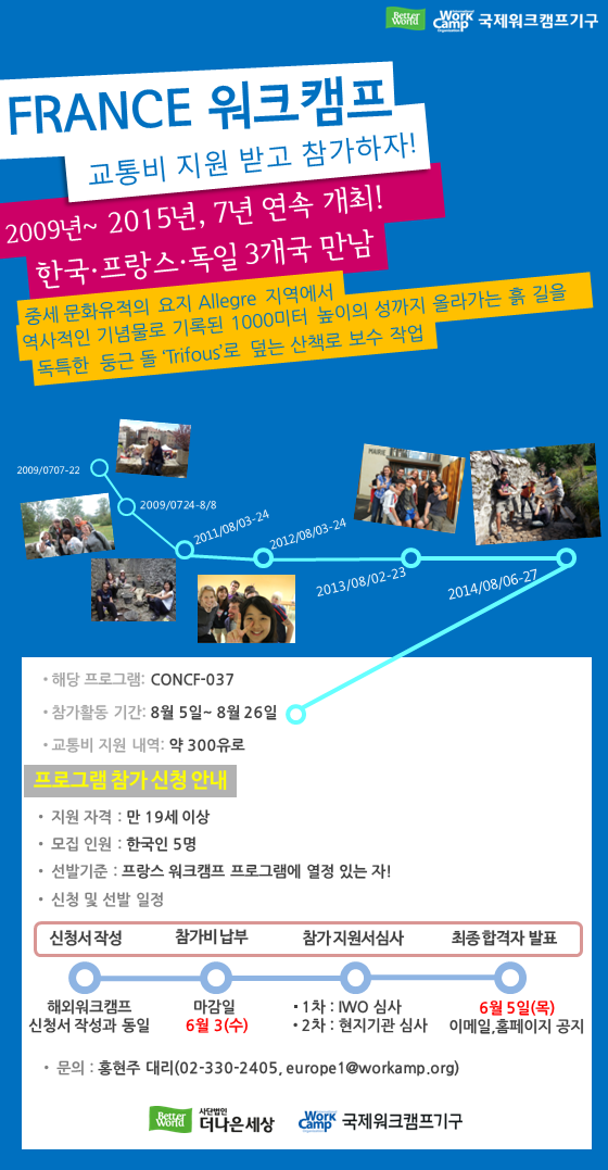 마감 교통비 지원받고, 프랑스 가자! 2015-05-18 작성자: 관리자 조회수: 4,981 국제워크캠프기구 < 이전 [발표] 2015 한국워크캠프 최종 합격자 다음 > [소식] 국제워크캠프 상반기 사전교육 개최 목록