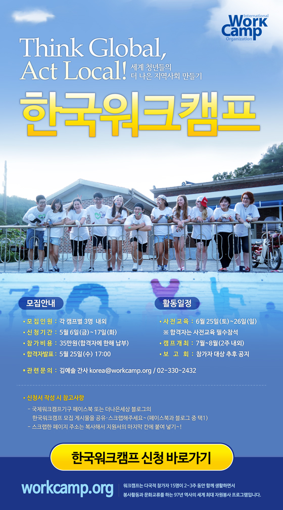 마감 한국에서 만나는 세계청년들의 더 나은 지역사회 만들기! 2016-05-06 작성자: 관리자 조회수: 1,029 한국워크캠프 신청 바로 가기 < 이전 [발표] UN NGO 컨퍼런스 참가자 다음 > [안내] 이탈리아 CPI 추가 제출서류 양식 목록