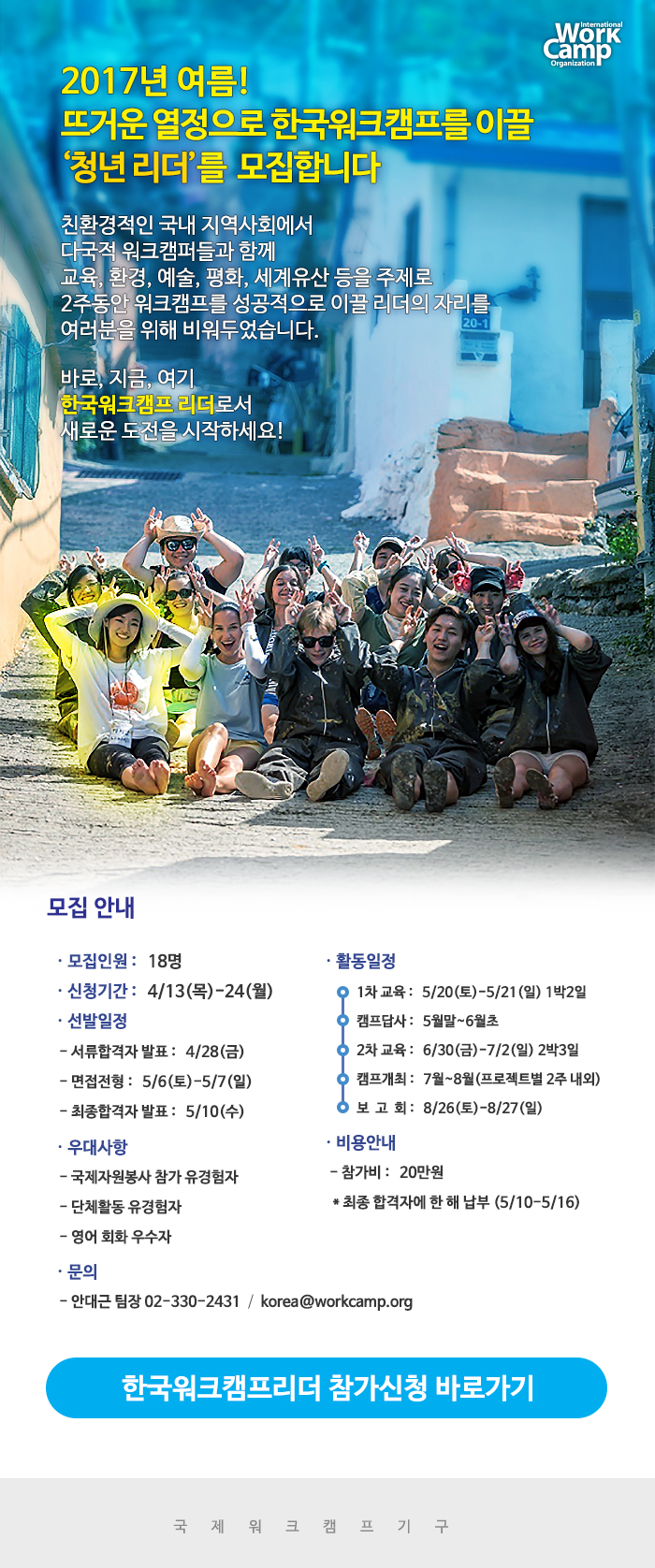 마감 한국워크캠프를 이끌 청년리더 2017-04-14 작성자: 관리자 조회수: 994 < 이전 [마감] 독일, Neon Night축제로! 다음 > [마감] UNESCO 세계유산자원봉사단 10기 모집 목록