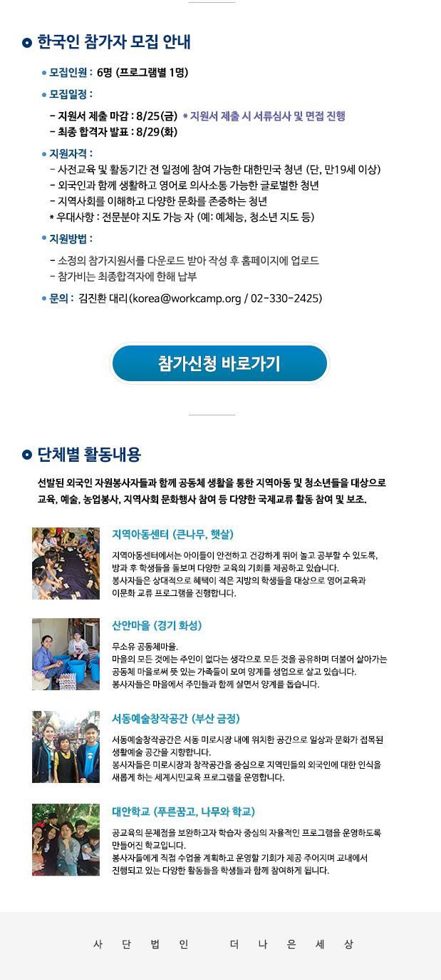 마감 LOVE Korea 9월 프로그램 한국인 봉사자 모집 2017-07-28 작성자: 관리자 조회수: 756 < 이전 [안내] 9월 워크캠프 리스트업 다음 > [마감] 아이슬란드 워크캠프 설명회 목록