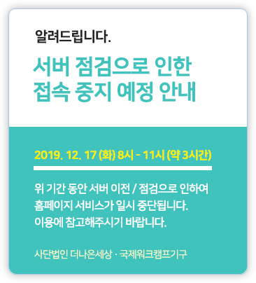 서버 이전 및 점검으로 인한 홈페이지 일시 중지 안내