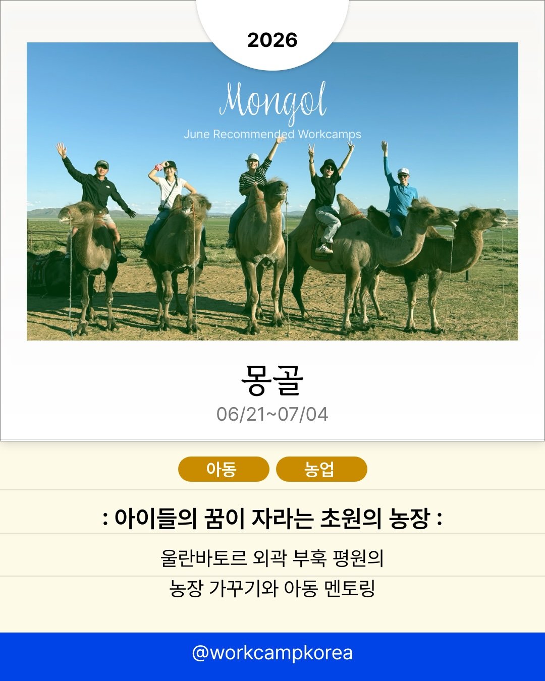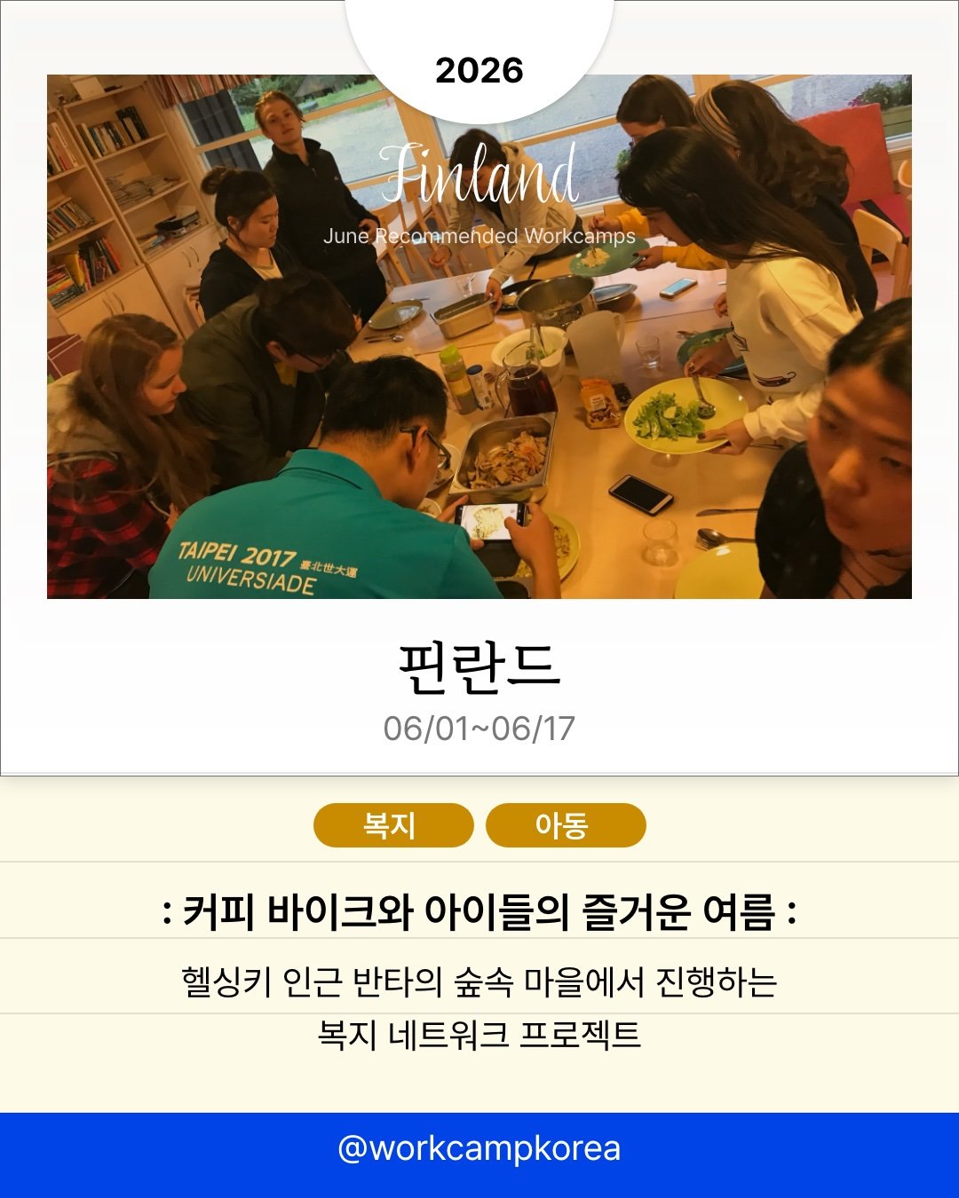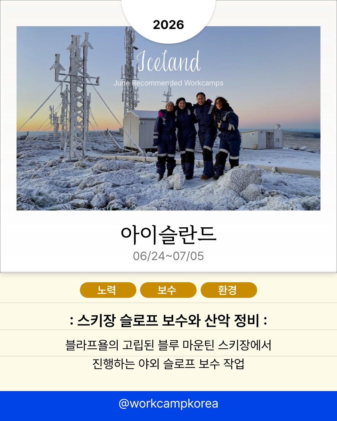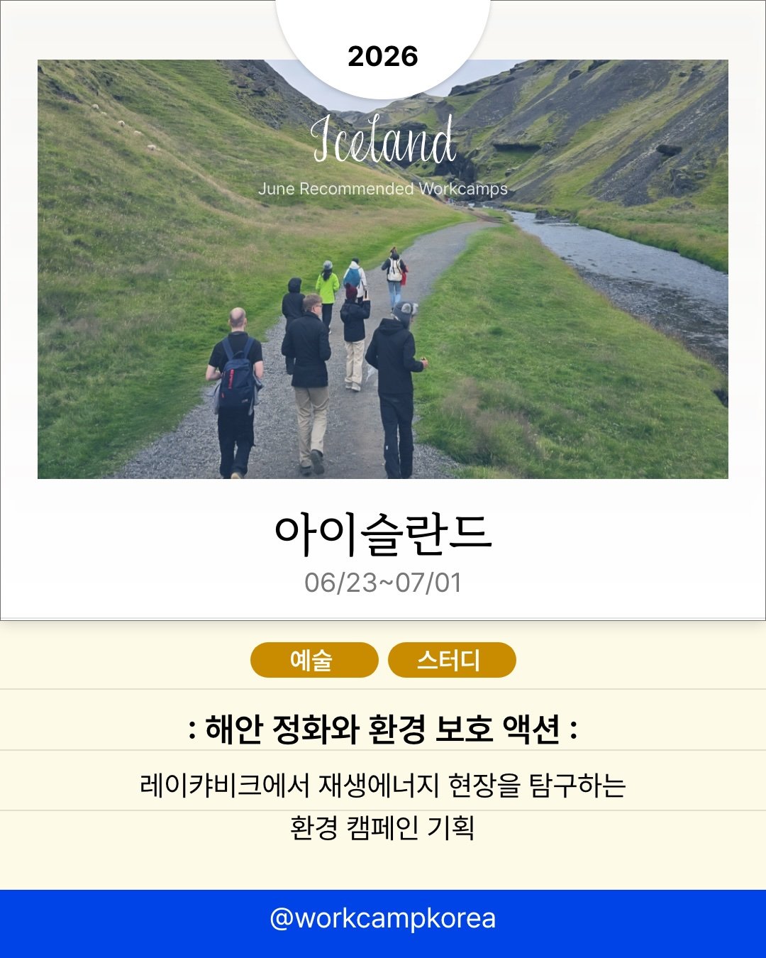 전 세계 각지에서 열리는 워크캠프 소식을 전해드려요. 시칠리아의 오렌지 농장부터 아이슬란드의 스키장, 마카오의 전통 축제 현장까지. 관광객이 아닌 현지인의 시선으로 2주간 머물며 각 지역의 일상을 직접 경험해 보세요. 프로그램별 모집 인원이 5명에서 20명 사이로 적어 조기 마감될 수 있으니, 관심 있는 국가는 지금 바로 세부 일정을 확인해 보세요!